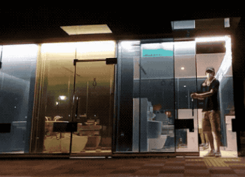 And this kind of transparent toilet appears on the street. When night comes, is there anyone in the toilet clearly visible.